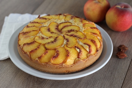 La torta esponjosa de duraznos es una opción para acompañar los desayunos o meriendas. Es un bizcochuelo con poca manteca pero muy húmedo gracias a la fruta en su interior.